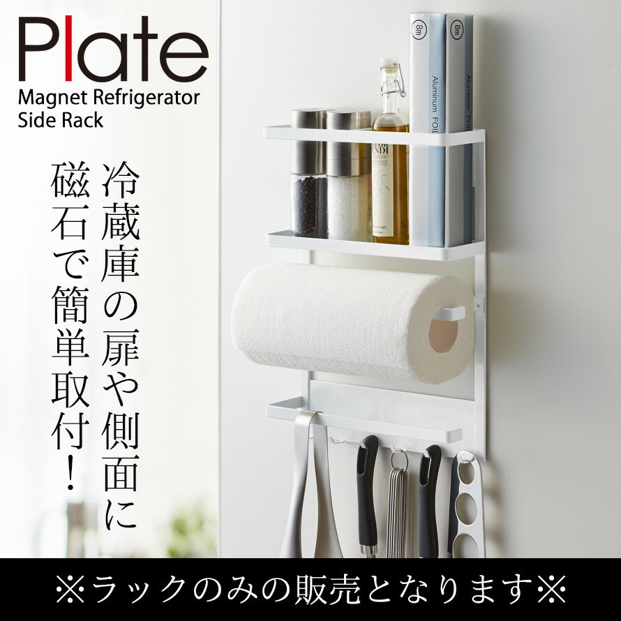 キッチンツールラック マグネット冷蔵庫サイドラック プレート ホワイト 02907